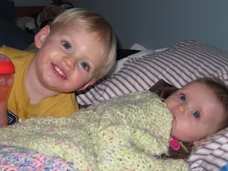 These two are actually starting to bond with each other. Evangeline loves to laugh at Rowan and Rowan loves it when Evangeline grabs his hair and tickles his back. Rowan shares his toys (for now) and dances around till Evangeline giggles. The list goes on! Here's what things are starting to look like at around the house, two kids doing things together!